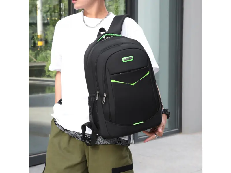 Удобна мъжка раница - Едно основно отделение с цип. - Три предни джоба с цип. - Дръжка за носене в ръка. - Два странични джоба. - Регулиращи се презрамки.