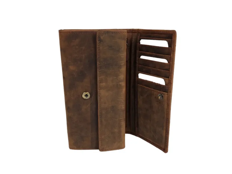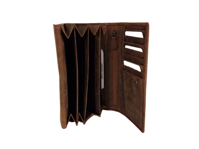 Дамско портмоне от хънтър кожа. Висококачествено дамско портмоне от естествена кожа - хънтър. Голямо дамско портмоне с много слотове за карти, документи, банкноти и монети - ePazar.bg