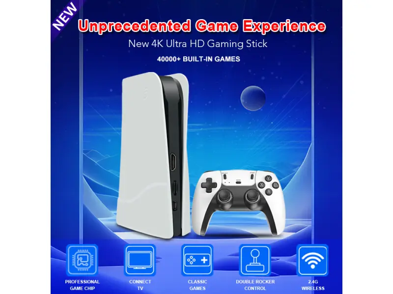 🎮 RS5 4K Game Stick – Ретро игрална конзола с 46 000+ игри и 2 безжични контролера