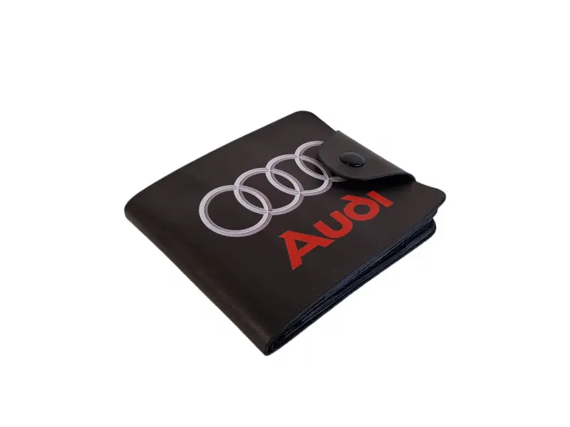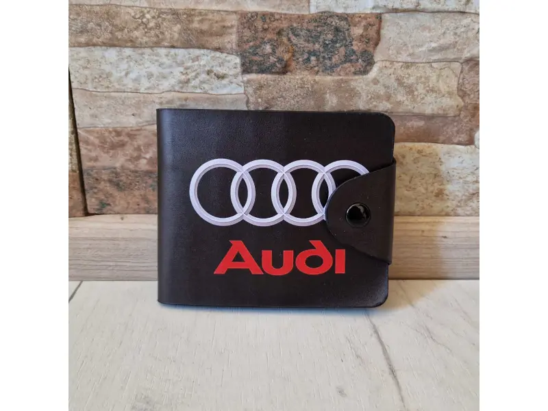 Мъжки портфейл за любителите на Audi - Мъжки портфейл от еко кожа. - Отделенение за банкноти. - Слотове за карти и лични документи. - Отделение за монети закопчаващо се с копче.