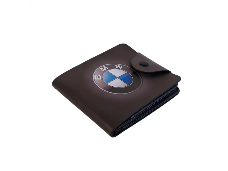 Мъжки портфейл с емблемата на BMW - Мъжки портфейл от еко кожа. - Отделенение за банкноти. - Слотове за карти и лични документи. - Отделение за монети закопчаващо се с копче.