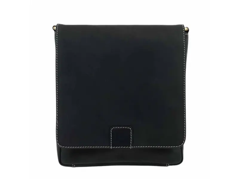 Качествена мъжка чанта - Tron. Качествена мъжка чанта от естествена кожа - телешка. Черна мъжка чанта с капак и вътрешна качествена подплата, здрава мъжка чанта от ePazar.bg