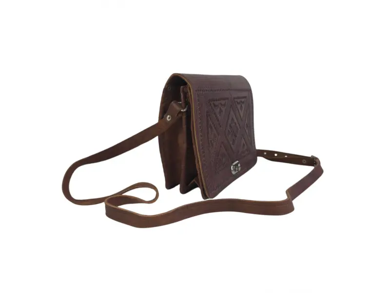 Кафява дамска чанта от естествена кожа, ръчно изработена. Мароканска дамска чанта с уникален дизайн. Стилна дамска чанта с удобна регулираща се дръжка. - ePazar.bg