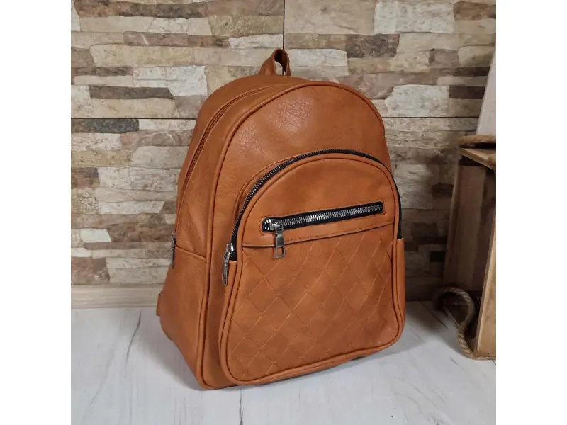 Ежедневна дамска раница - Дамска раница от еко кожа. - Едно голямо отделение с цип. - Вътрешен джоб с цип. - Два предни джоба се с цип. - Дръжка за носене в ръка. - Регулиращи се презрамки.