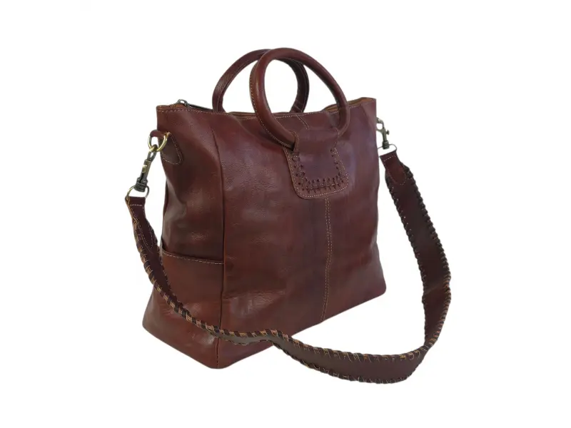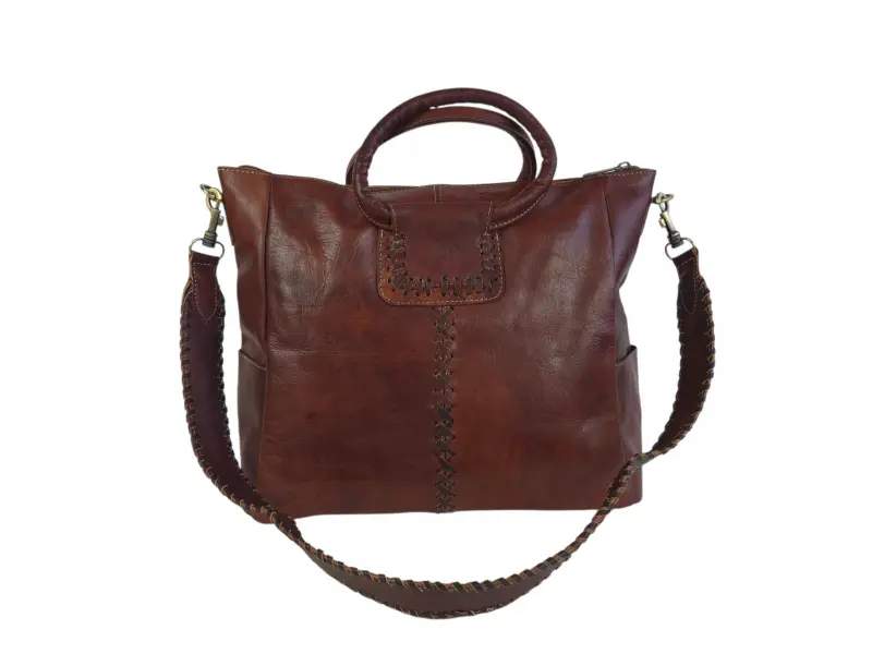 Кафява дамска чанта от естествена кожа, ръчно изработена. Мароканска дамска чанта с уникален дизайн. Стилна дамска чанта с удобни дръжки. - ePazar.bg