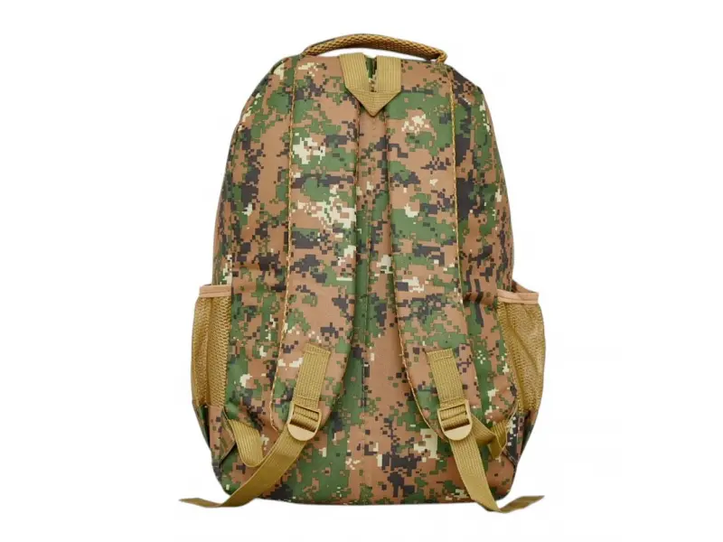 Камуфлажна мъжка раница от плат. Раница с удобни отделения и здрави ципове. Голяма раница с удобен гръб, дръжка за носене в ръка и регулиращи се презрамки.