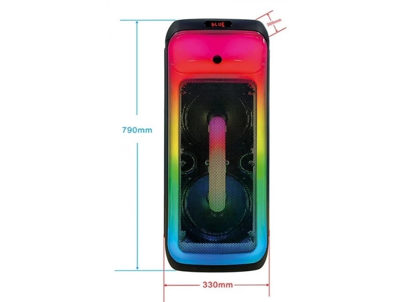 Добавете магия към всяко събитие с караоке светеща тонколона WVNGR DR-1028! С два мощни 10.5 инчови говорителя, тази тонколона ще осигури кристално чист звук и динамика, която ще възбуди всяка емоция. С впечатляващи светещи ефекти и възможност за работа както на акумулатор, така и на 220V, тя е перфектният избор за всяка атмосфера.