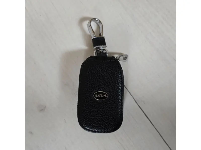 Качествен ключодържател от естествена кожа в черен цвят. Идеален подарък за феновете и притежателите на коли - Kia.