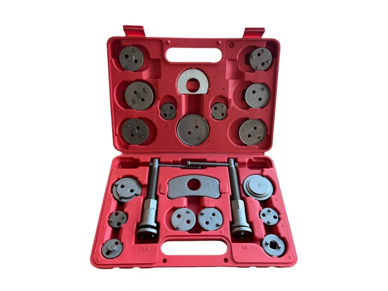 Комплектът инструменти за смяна на накладки от 21 части е създаден за професионалисти и любители, които търсят удобство и ефективност при подмяната на спирачни накладки.