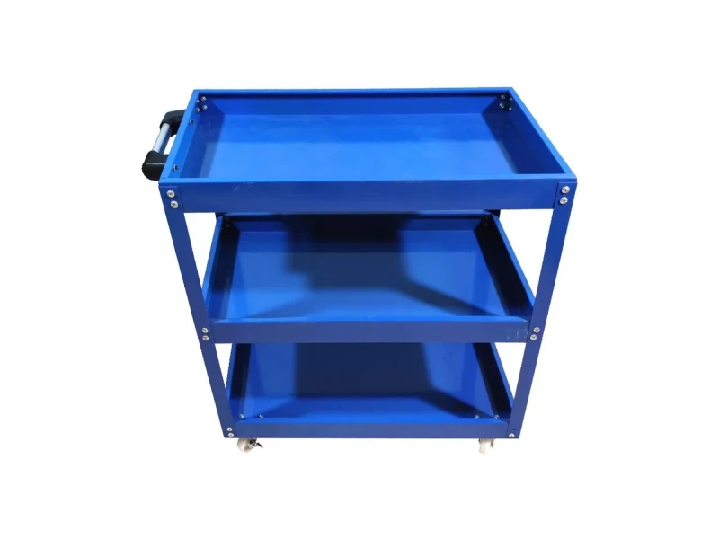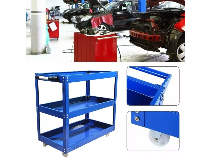Тази количка за инструменти е идеално решение за организиране на работното пространство, осигурявайки удобен достъп до вашите инструменти и аксесоари. С три просторни рафта и здрава конструкция, тя е идеална за употреба в гаражи, работилници и други места, където е необходимо съхранение и мобилност.Характеристики: Широчина: 35 см Дължина: 72 см Височина: 79,5 см Материал: Метал с прахово покритие за дълготрайна издръжливост и устойчивост на корозия. Брой рафтове: 3 - осигуряват достатъчно пространство за съхранение на различни инструменти и принадлежности. Цвят: Син - елегантен и забележим, който добавя стил към всяка работна среда. Колела: 4 броя, като две от тях имат заключващ механизъм за допълнителна стабилност и сигурност при работа.Тази количка е не само практична, но и лесна за маневриране благодарение на колелата, като предлага надеждно и безопасно съхранение на вашите инструменти. Подходяща е за професионална и домашна употреба.