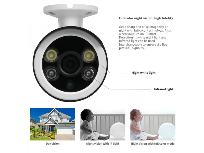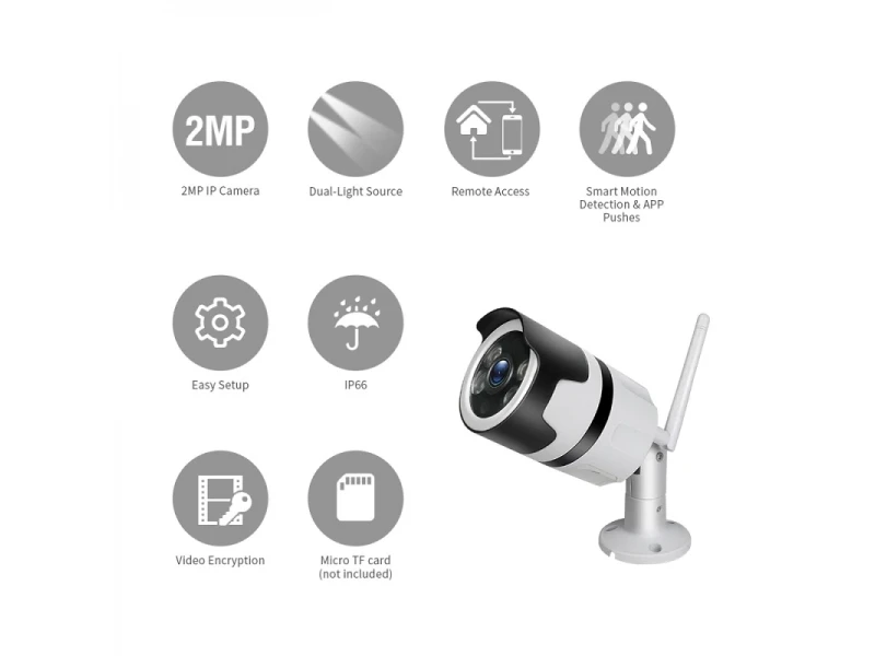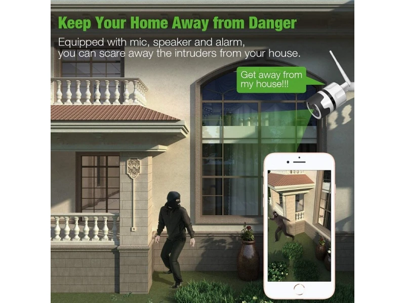 Външна IP WIFI смарт камера Lylu, 5MP, IP65, авто проследяване, водоустойчива, двупосочно аудиоWifi камерата може да се настрои и монтира за няколко минути, без необходимост от допълнителни устройства или кабели. Камерата изпраща нотификации при движение или звук директно на смартфома, чрез приложението с което работи. Автоматичен нощен режим. Наблюдение през мобилни устройства: Android, iOSЗа външен и за вътрешен монтаж.Записване върху микро SD карта и възможност за записване в облак.Камерата се свързва както през Wifi, така и през LanРаботи с приложение за Android и IOS: V380 ProВ комплекта не е включено захранване - адаптер 220 V - DC 12 VМоже да заявите допълнително и адаптер за 8 лв, като опция при изготвяне на поръчката.Предимства:Двупосочен звук: Говорете с посетителите, независимо къде се намиратеРезолюция 5MpIEEE802.11b / g / n Безжична честотаФункция за откриване на движение и автоматично проследяванеWEP / WPA-PSK / WPA2-PSK криптиране Безжична защитаMicro SD до 128GBПоддържа Android и IOS устройстваПроектирани да добавят допълнителна сигурност вкъщи, във вашите ресторанти, магазини, офиси и т.н..ХарактеристикиDC:12V±5% Input Power2.4~2.4835 GHz Wireless Frequency355°/85° Pan/Tilt5.0M pixel HD CMOS Image Sensor3.6mm LensH.264/MJPEG Video Compression10 meters Night Vision25-30fps Frame RateTwo-way AudioWEP/WPA-PSK/WPA2-PSK encryption Wireless SecuritySD up to 128GB Storage (not included)Protection Rating: IP65Комплекта включва:3 бр. Безжична камера WIFI HD IP/P2P camera 5MP.3 бр. WI-FI Антена3 бр. Комплект крепежни елементи.3 бр. Упътване на английски език.