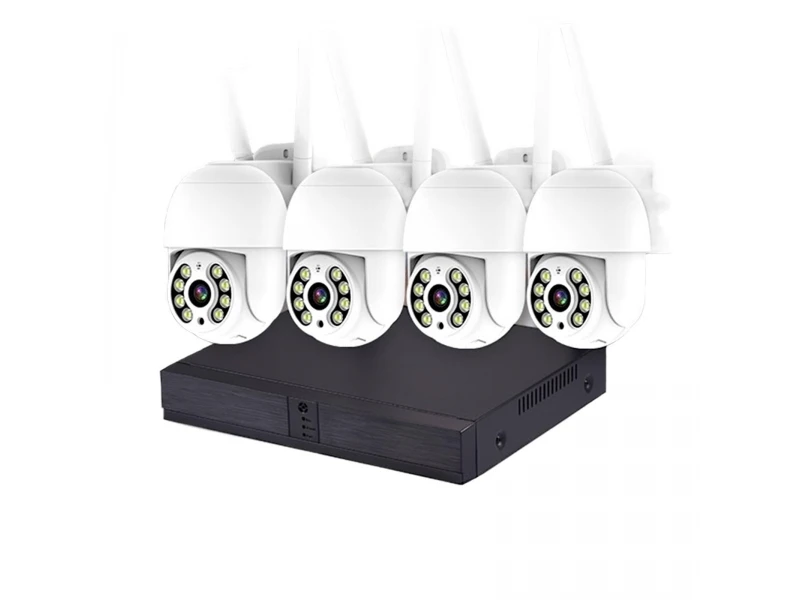 • Комплект с 4 безжичени въртящи камери и NVR записващо устройство