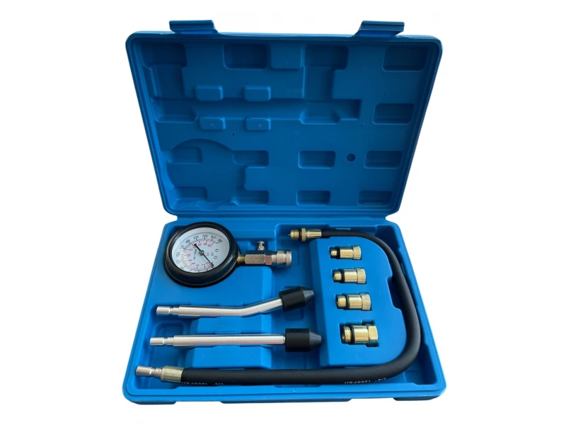 🚀 Основни предимства на комплекта за измерване на компресия🔍 Точност и надеждност Висококачествен манометър 0-21 bar (0-300 PSI) с предпазна обвивка за прецизни измервания 😊 Стабилна конструкция, гарантираща постоянна точност при многократна употреба 🔄 Гъвкави удължения и адаптери Право удължение и удължение под ъгъл за достъп до труднодостъпни цилиндри Удължаващ маркуч за максимален комфорт при работа Комплект адаптери M10×1.0, M12×1.25, M14×1.25 и M18×1.5 - съвместимост с повечето бензинови двигатели ⚙️ Лесен за употреба и универсален Бързо свързване и лесно отчитане на резултатите Подходящ за професионални автомеханици и домашни натурфилмейкъри Идеален за профилактика, диагностика и поддръжка на бензинови двигатели 📋 Характеристики на комплекта Манометър: 0-21 bar (0-300 PSI) с предпазна обвивка Удължения: право и под ъгъл Маркуч: гъвкав удължаващ маркуч Адаптери: M10×1.0 M12×1.25 M14×1.25 M18×1.5