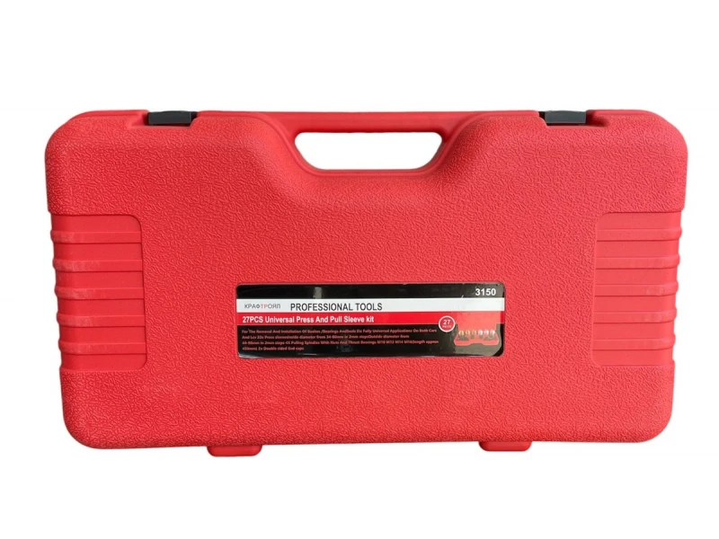 🔧 Универсален комплект за монтаж и демонтаж на втулки, лагери и тампони - 26 частиПрофесионален комплект от 26 части, подходящ за монтаж и демонтаж на селенови втулки, лагери, семеринги и тампони на носачи. Незаменим инструмент за автосервизи и механични работилници.⚙️ Характеристики и съдържание: Шпиндели с гайки и аксиални лагери: M10, M12, M14, M16 - издърпващи резби за различни приложения 2 адаптера с размери: Ø42-48 / 54-60 Ø36-42 / 48-54 / 60-66 Втулки за избиване (Gold): 44xØ34, 46xØ36, 54xØ44, 56xØ46, 58xØ48 66xØ56, 68xØ58, 70xØ60, 78xØ68, 80xØ70, 84xØ72 Втулки за избиване (Silver): 48xØ38, 50xØ40, 52xØ42, 60xØ50, 62xØ52 64xØ54, 72xØ62, 74xØ64, 76xØ66 ✅ Предимства: Универсална съвместимост за различни автомобили Идеален за монтаж и демонтаж без повреди Подходящ за професионална употреба в сервизи Здрава кутия за съхранение и лесно пренасяне