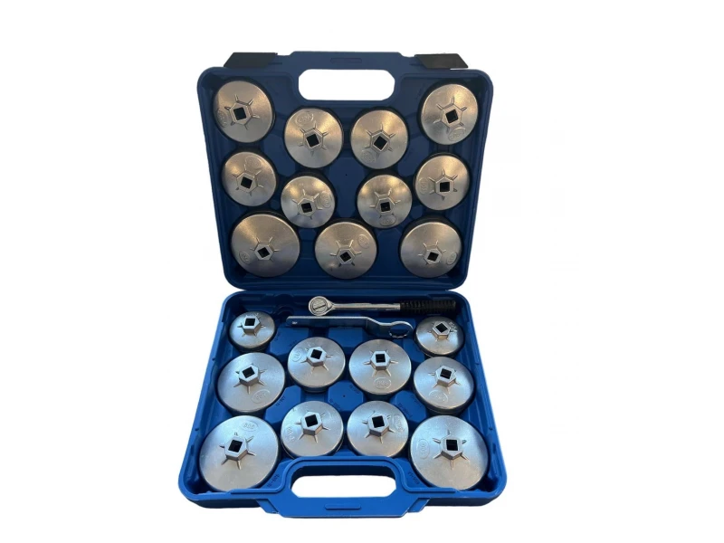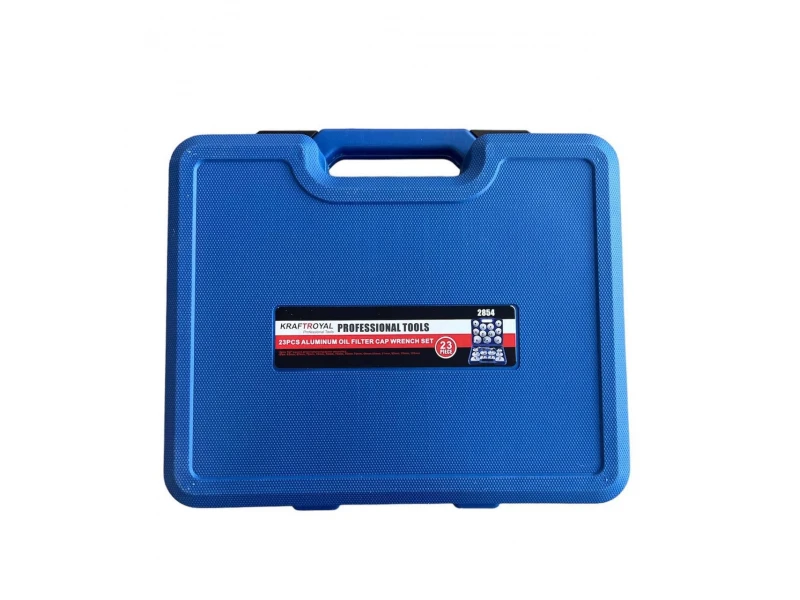 Професионален комплект чашкови ключове за маслен филтър KraftRoyal – 23 размера, хром-ванадиева стомана и компактно куфарче за универсална употреба.