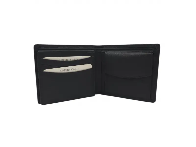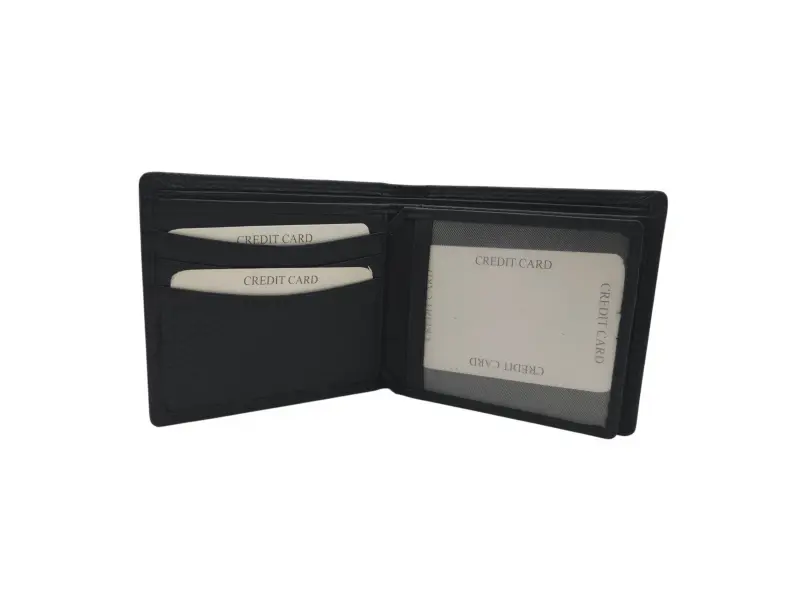 Кожен портфейл за автомобилни фенове на БМВ - Черен мъжки портфейл от естествена кожа. - Отделение за банкноти. - Слотове за карти и лични документи. - Отделение за монети.