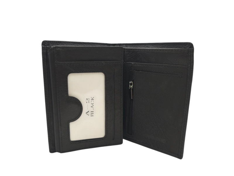 Вертикален мъжки портфейл от качествена естествена кожа. Мъжки портфейл с удобно разпределние за банкноти, монети, карти и лични документи. Портфейл с нов дизайн.