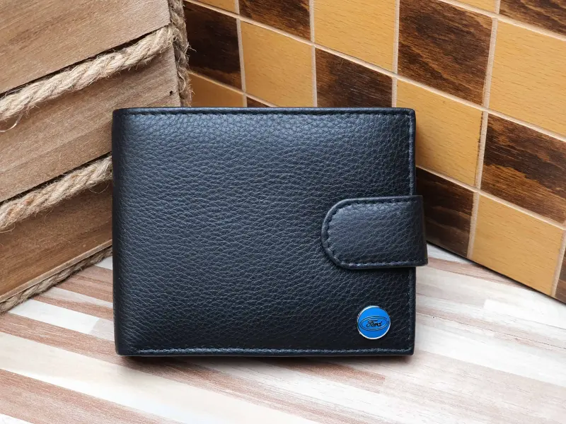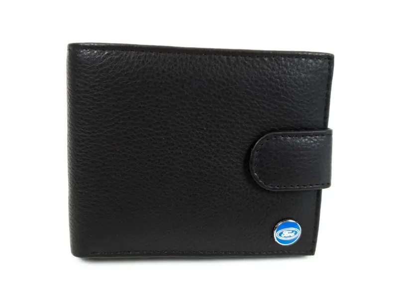 Мъжки портфейл от естествена кожа със закопчалка и логото на Форд. Интересен мъжки портфейл с много слотове за карти и документи, преграда за банкноти и монетник.