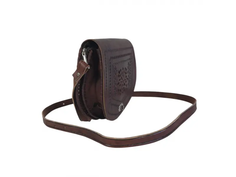 Кафява дамска чанта от естествена кожа, ръчно изработена. Мароканска дамска чанта с уникален дизайн. Стилна дамска чанта с удобна регулираща се дръжка. - ePazar.bg