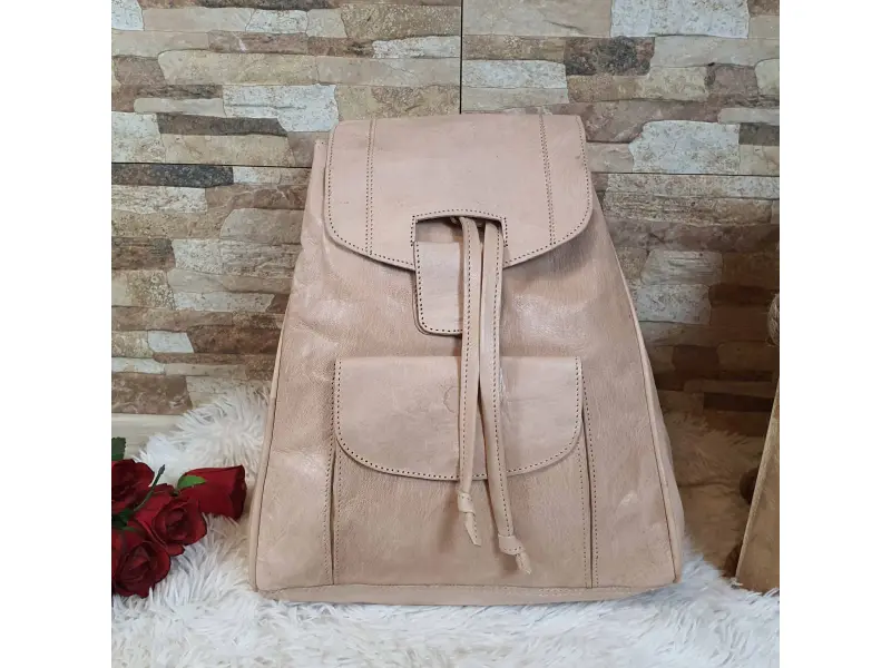 Кожена дамска раница - Uoran. Кафява дамска раница от естествена кожа, внос от Мароко. Удобна дамска раница с много отделения, дръжка за носене и регулиращи се презрамки.- ePazar.bg