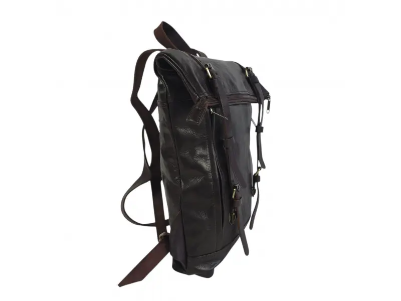 Тъмно кафява раница от висококачествена естествена кожа. Голяма раница с удобно разпределение и презрамки. Кожена раница произведена в Мароко.