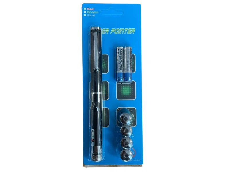 Лазерна показалка с 5 представки - GREEN LASER POINTER 200mW уреда притежава висока мощност на произведения лъч.