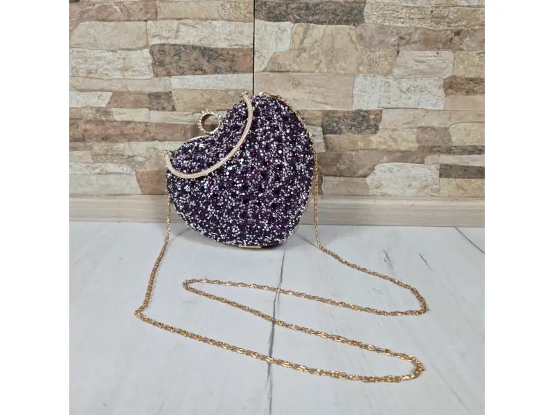 Лилава вечерна чанта - сърце | Дамски чанти (ePazar.bg)