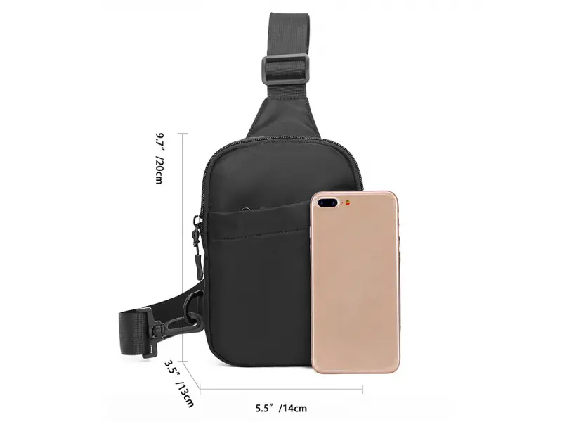 Мъжка малка чанта за ежедневието - Мъжка чанта, която може да се носи през гърди, рамо или гръб тип раница. - Едно основно отделениe с цип. - Преден джоб с цип. - Регулираща се презрамка. - Възможност за смена на посоката.