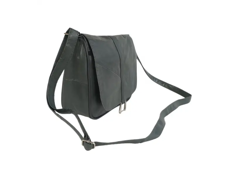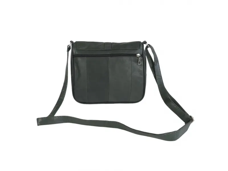 Стилна дамска чанта - Дамска чанта от естествена кожа. - Едно основно отделение с цип и капак с магнитно закопчаване. - Предно джобче с цип. - Малко вътрешно джобче с цип. - Заден джоб с цип. - Регулираща се се дълга дръжка.