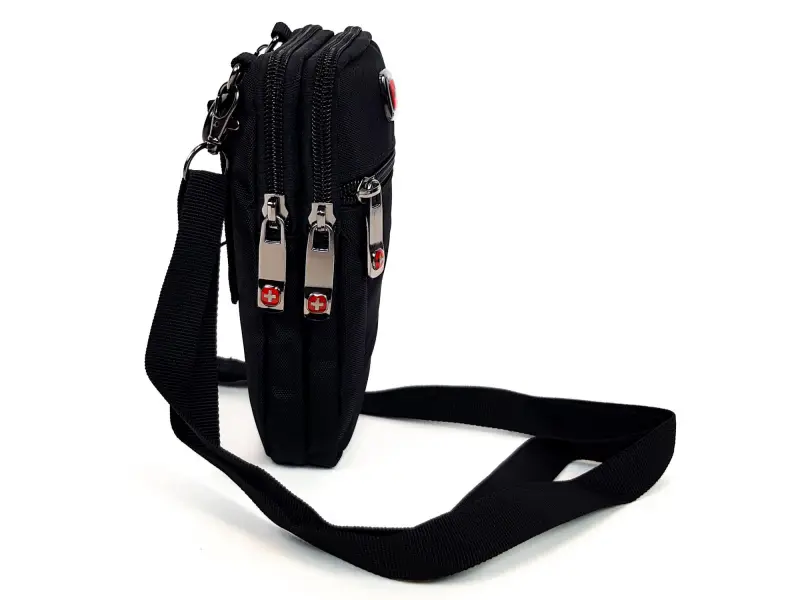 Качествена мъжка чанта от плат. Малка мъжка чанта с няколко отделения затварящи се със здрави ципове и възможност за закачане и поставяне на колан.