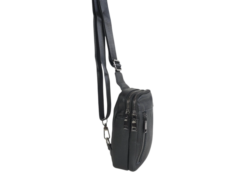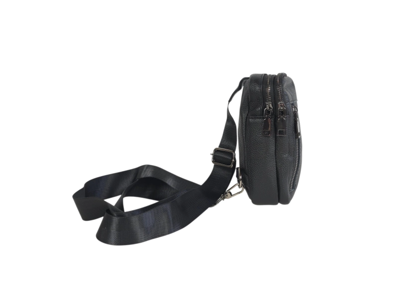 Удобна мъжка чанта - Мъжка чанта за през гърди от естествена кожа. - Две основни отделения с цип. - Вътрешно джобче без цип. - Преден джоб с цип. - Регулираща се презрамка. - Възможност за смяна на посоката.
