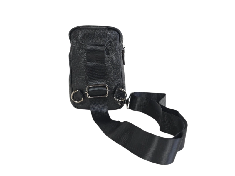 Мъжка чанта от естествена кожа в черен цвят. Чанта за през гърди, която може да се носи и на гърба тип раница. Кожена мъжка чанта с удобни отделения и здрави ципове с удобна презрамка.