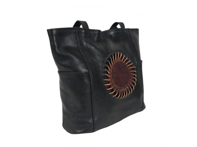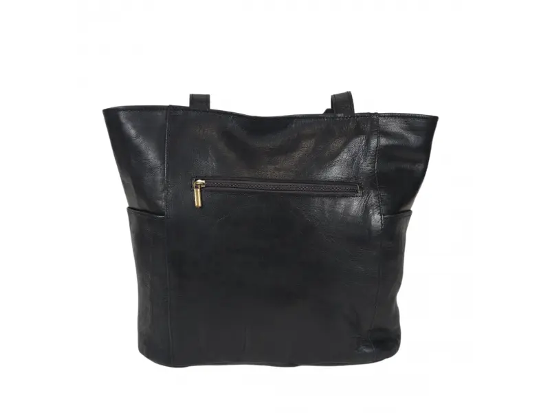Ръчно изработена дамска чанта - Дамска чанта от естествена кожа. - Едно основно отделение с цип. - Малък вътрешен джоб с цип. - Малък вътрешен джоб без цип. - Два странични джоба. - Заден джоб с цип. - Удобни дръжки.