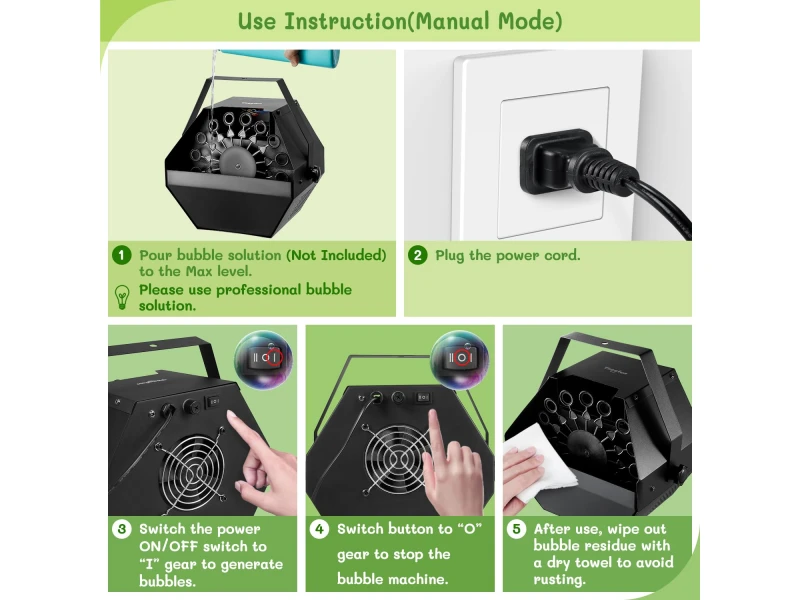 • Автоматично изстрелва сапунените балони напред, за максимален ефект