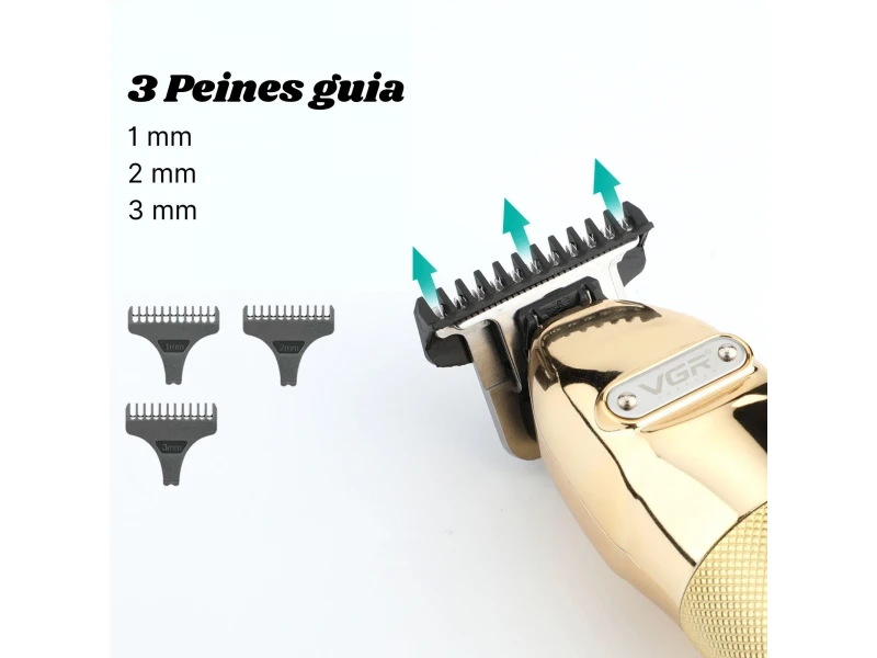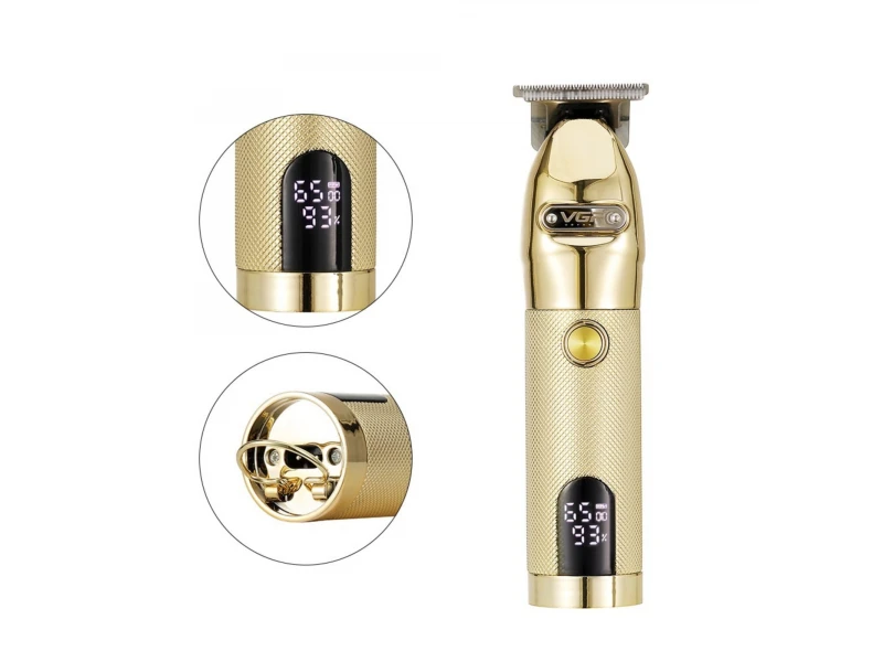 Машинка за подстригване VGR 650, Стоманено острие, LCD дисплей, Шест приставки, Златен
