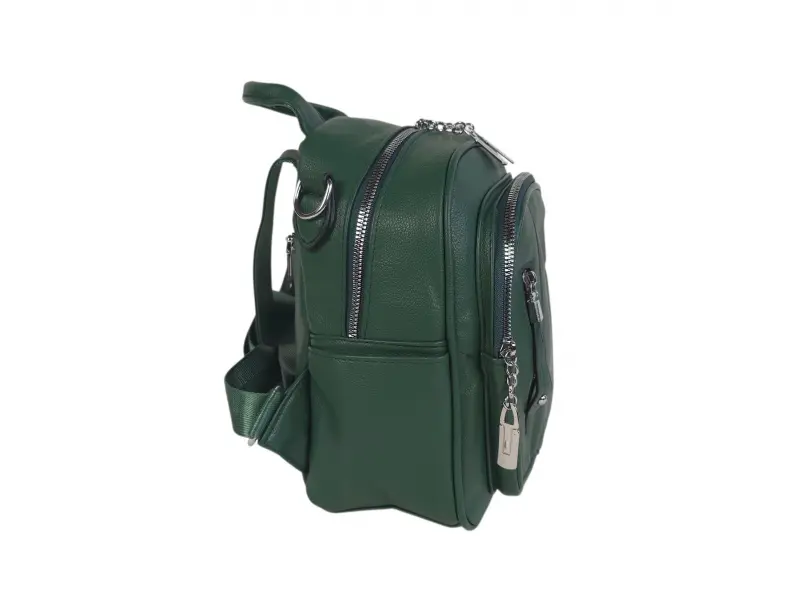 Дамска раница от висококачествена изкуствена кожа. Маслено зелена раница с красив и актуален дизайн с удобни отделения. Ежедневна дамска раница с удобни регулиращи се презрамки.