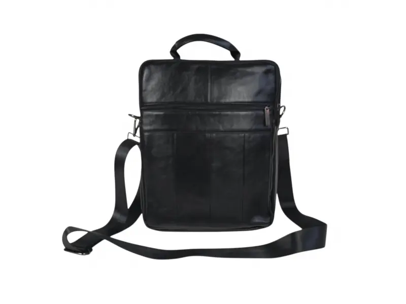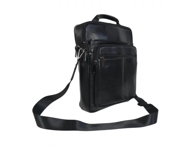 Стилна кожена мъжка чанта - Две основни отделения с цип. - Малък вътрешен джоб с цип. - Три предни джоба с цип. - Заден джоб с цип. - Дръжка за ръка. - Регулираща се презрамка.