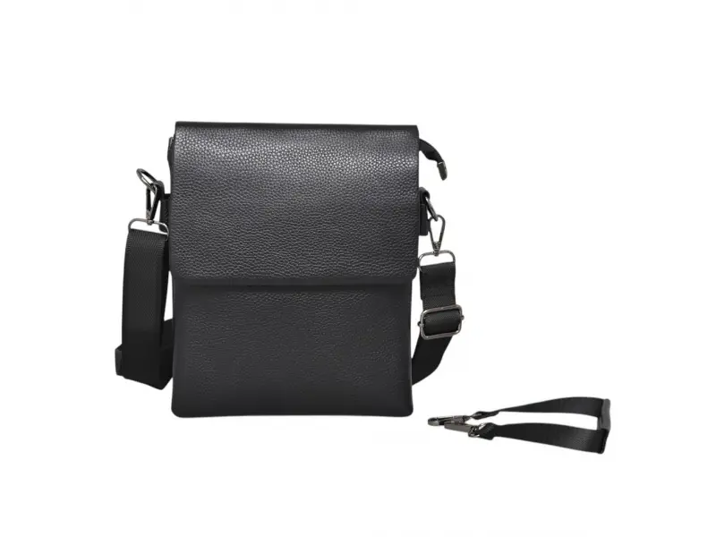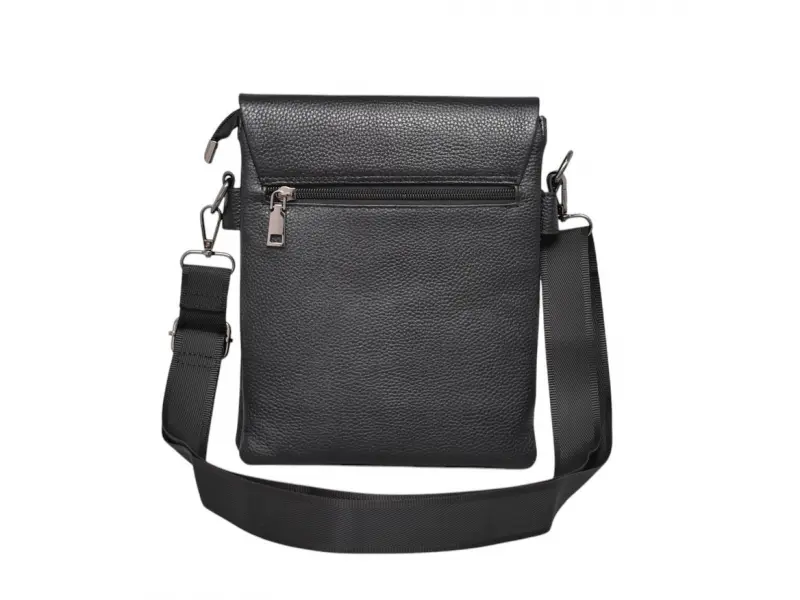 Стилна кожена мъжка чанта - Две основни отделения с цип. - Междинен джоб без цип. - Малък вътрешен джоб с цип. - Капак закопчаващ се с магнит. - Джоб под капака. - Заден джоб с цип. - Дръжка за ръка. - Регулираща се презрамка.