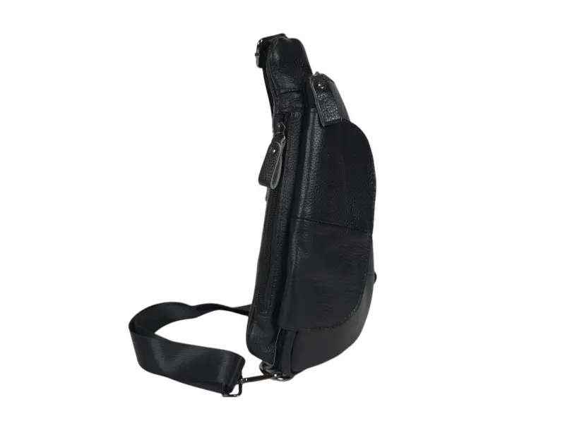 Удобна мъжка чанта за през гърди от естествена кожа. Стилен модел мъжка чанта с удобни отделения и регулираща се презрамка. Тънка мъжка чанта в черен цвят.