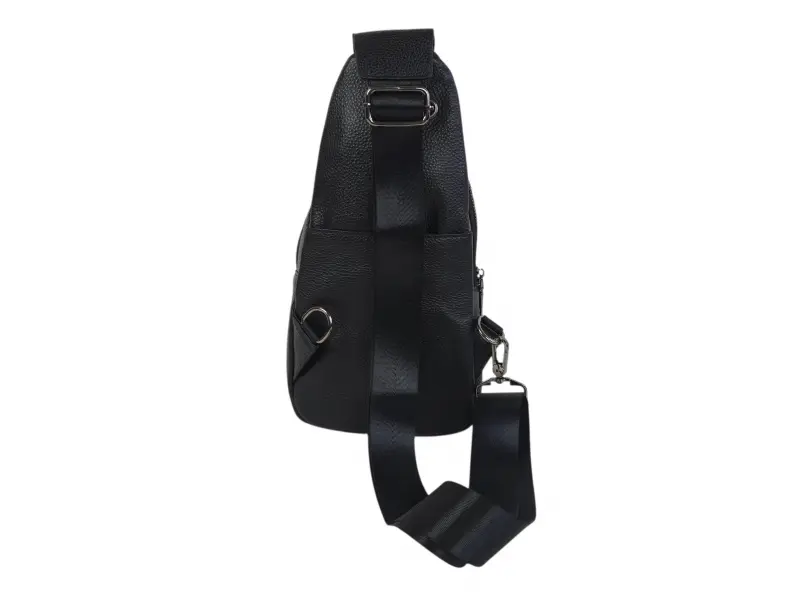 Мъжка чанта от естествена кожа в черен цвят. Чанта за през гърди, която може да се носи и на гърба тип раница. Кожена мъжка чанта с удобни отделения и здрави ципове с удобна презрамка.