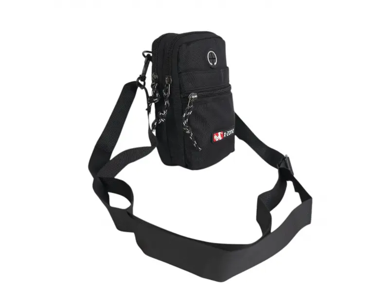 Мъжка чанта от плат - Мъжка чанта от качествена материя. - Две основни отделения с цип. - Преден джоб с цип. - Възможност за закачане на колан. - Дълга регулираща се дръжка.