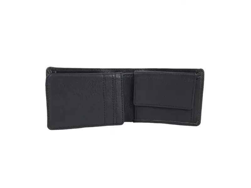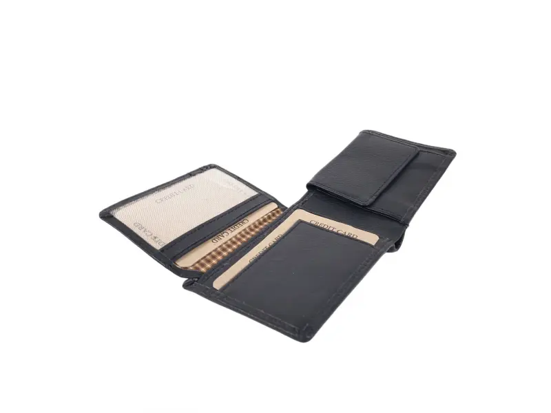 Качествен мъжки портфейл - Мъжки портфейл от естествена кожа. - Отделенение за банкноти. - Слотове за карти и лични документи. - Отделение за монети закопчаващо се с копче.