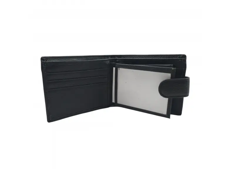 Кожен модел мъжки портфейл - Черен мъжки портфейл от естествена кожа. - Отделение за банкноти. - Слотове за карти и лични документи. - Отделение за монети.