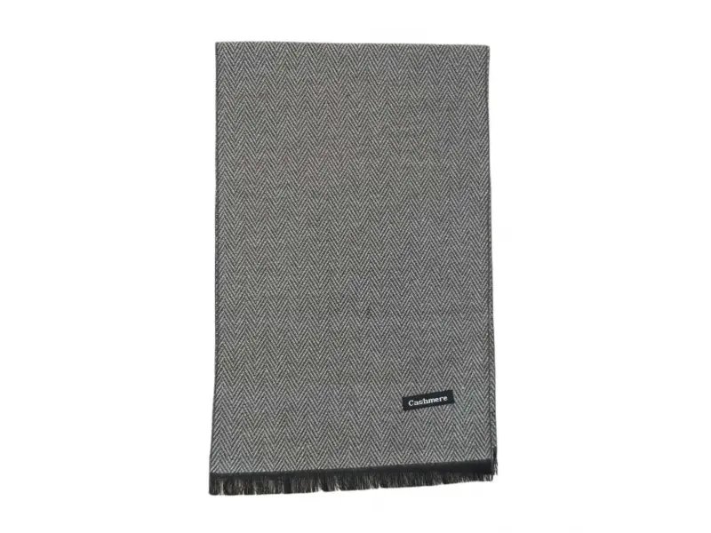 Мъжки шал с усещане на кашмир в сив цвят. Качествен шал подходящ както за студените есенни дни така и за зимния сезон.