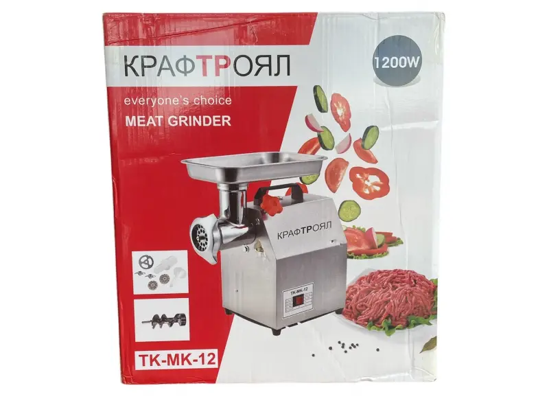 Открийте професионалната електрическа месомелачка TK-M12 с мощност 1200W - идеалният помощник за вашия бизнес! 💪 С производителност до 150 кг/час и устойчив корпус от алпака, тя е създадена за интензивна употреба. Лесна за почистване и поддръжка, TK-M12 обработва всякакви видове меса, осигурявайки хигиеничност и надеждност. Изберете качество и ефективност за вашата кухня! Поръчайте сега и подобрете работния си процес! 🥩