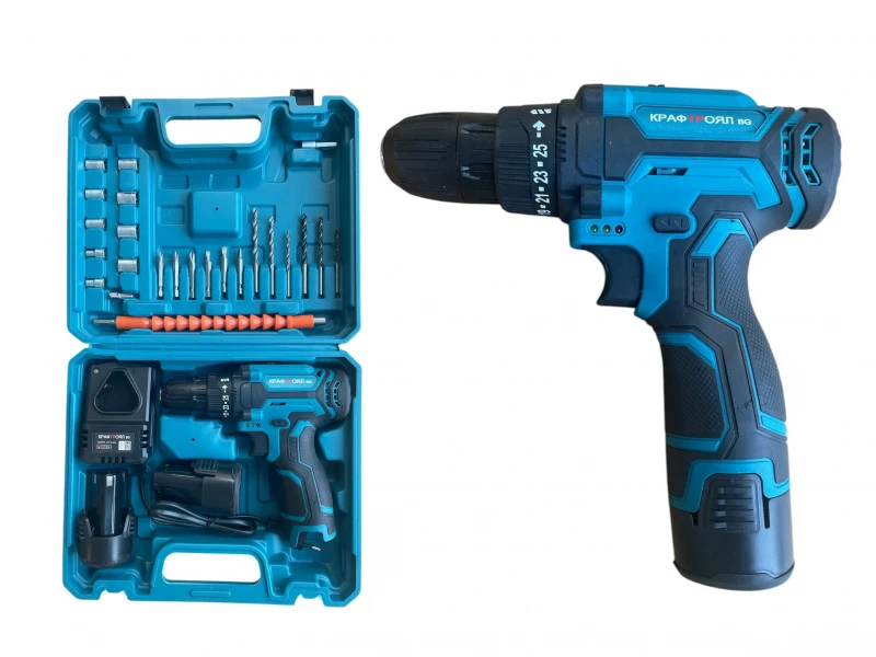 • Мини Акумулаторен винтоверт KraftRoyal с две батерии + 24 части инстурменти