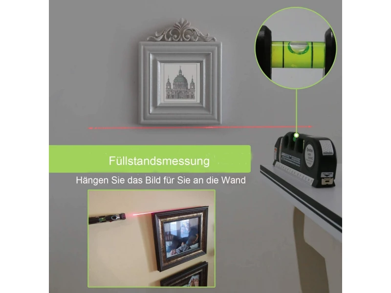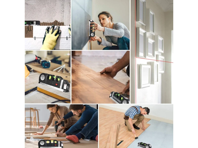 Многофункционалният въздушен мехур е много полезен аксесоар в комплекта за инструменти, предлагащ няколко съдове в едно: нивото на въздушния балон на всички оси, – Лазерен лъч за проследяване от разстояние, – Алуминиева измервателна решетка, – Рулетка. Нивото на въздушните мехурчета осигурява вертикален, хоризонтален и 45 градусов ъгъл. Лазерното ниво включва три опции: хоризонтално, вертикално и плюс. Алуминиевият влакър е отбелязан от едната страна (6 инча), а от другата – в сантиметри (15 см) Самоуправляема рулетка с дължина 2,5 м.