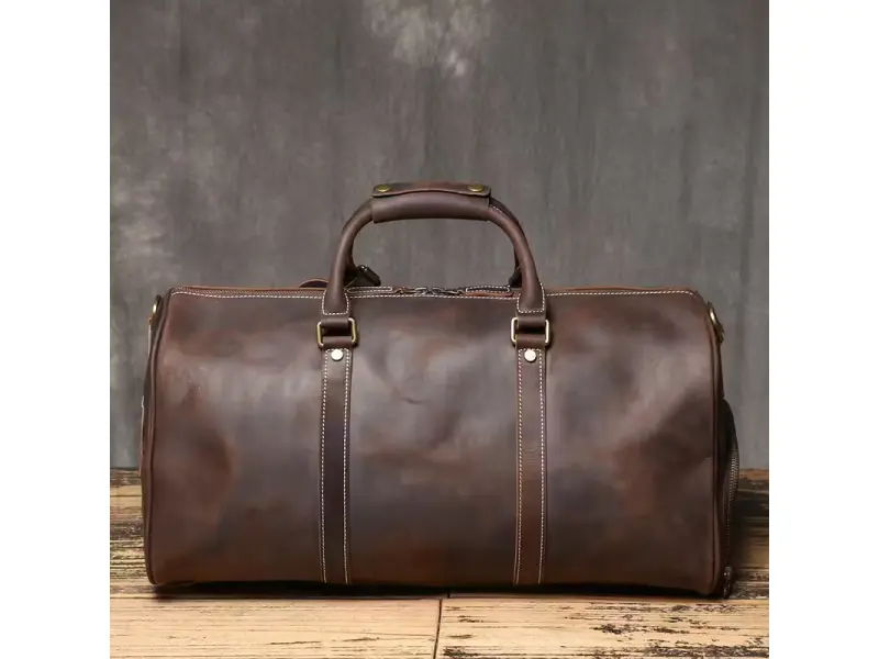 Качествен чанта за път с удобни отделения - Сак от специално обработена кара, ествествена кожа. - Едно основно отделение с цип. - Вътрешенни малки прегради - Странично отделение за обувки с цип. - Удобни дръжки за носене. - Дълга регулираща се дръжка.
