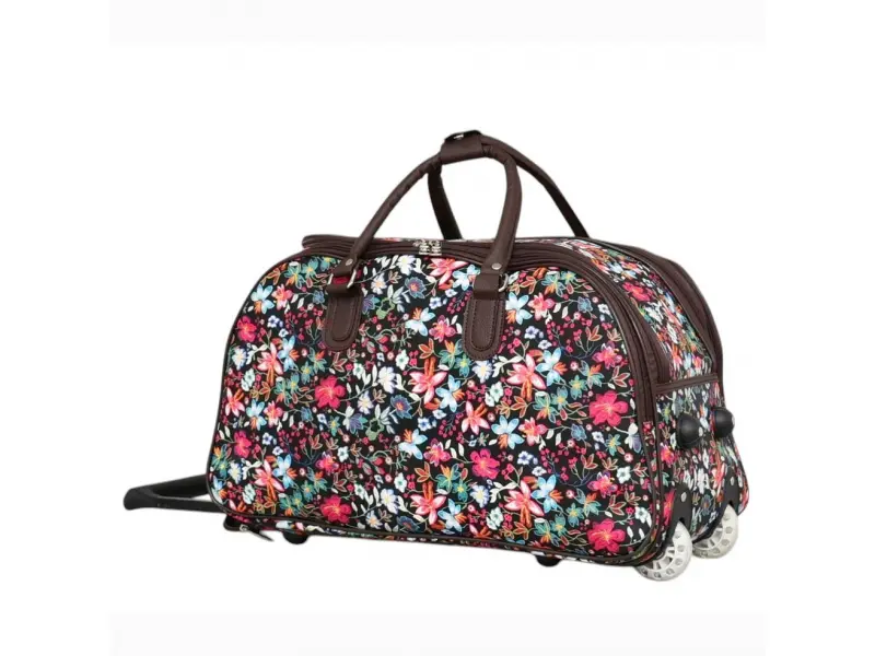 Пътна чанта с цветя от еко кожа с основно отделение с цип, дръжки за носене. Чанта на колела на достъпна цена от онлайн магазин ePazar.bg