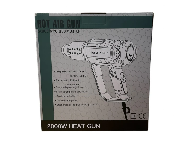 Инструментът предлага и възможност за регулиране на топлината, което позволява прецизно управление на температурата и осигурява оптимални резултати при различни материали и условия на работа. Пистолетът е идеален за задачи като сваляне на боя, разглаждане на лепила, разширяване на пластмаси, изсушаване на мокри повърхности и много други.